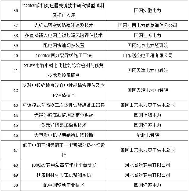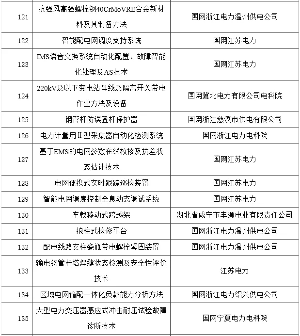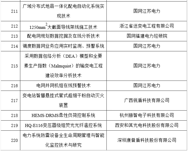 近日,國(guó)家電網(wǎng)公司公布了220項(xiàng)新技術(shù)通過(guò)評(píng)估,名單如下: